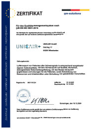 Zertifikat Qualitätsmanagementsystem nach DIN EN ISO 9001:2015